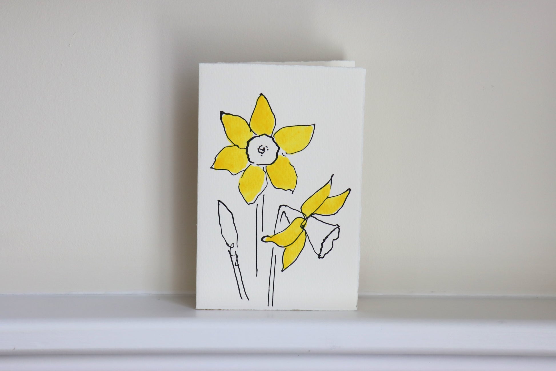 Each Scribble & Daub card begins as an original dip pen & ink design drawn by Caroline Kent, letterpress-printed on a vintage Heidelberg press, then individually hand-painted in her East Sussex Studio.