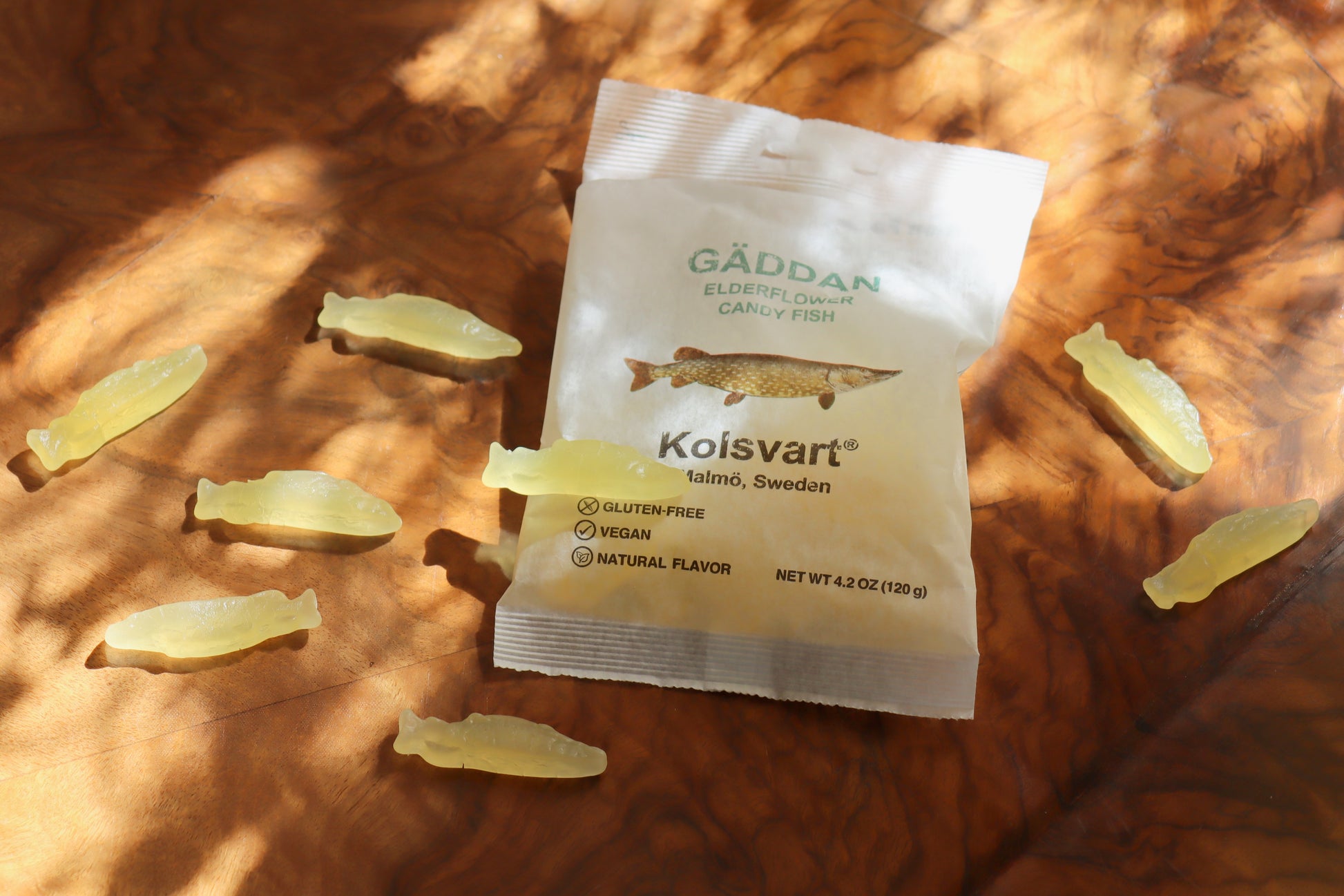 A delightful take on the classic candy fish, elevated both in taste and style. These Swedish Fish are naturally-colored, deliciously-flavored with traditional Swedish ingredients, and shaped like real cod (Raspberry & Blackcurrant) and pike (Elderflower).